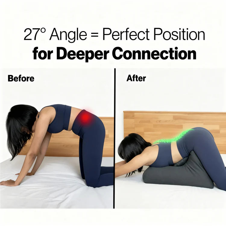 Through extensive testing, 27° was found to be the perfect elevation to reduce hip, back, and shoulder strain while aligning bodies for maximum comfort and pleasure.